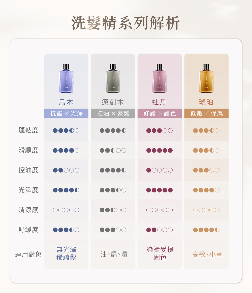 烏木 / 癒創木 / 牡丹 / 琥珀 — 嚐鮮必買!( 洗髮精50ml + 修護素 50ml )