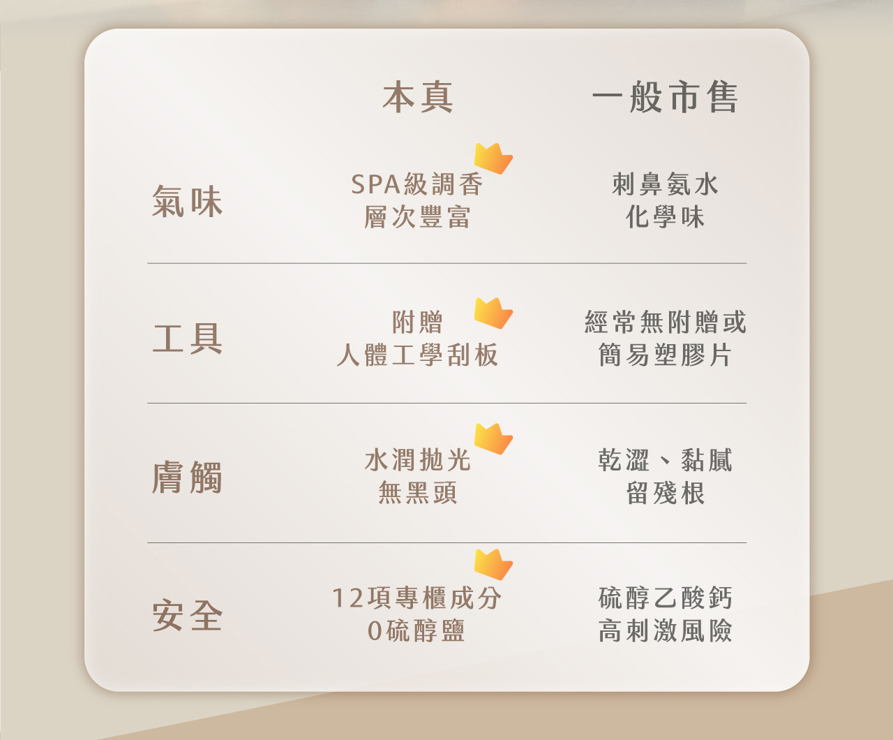 細緻乳霜基底溫和抹除多餘體毛,為肌膚留下一抹淡雅香氣與絲緞般的光滑觸感。