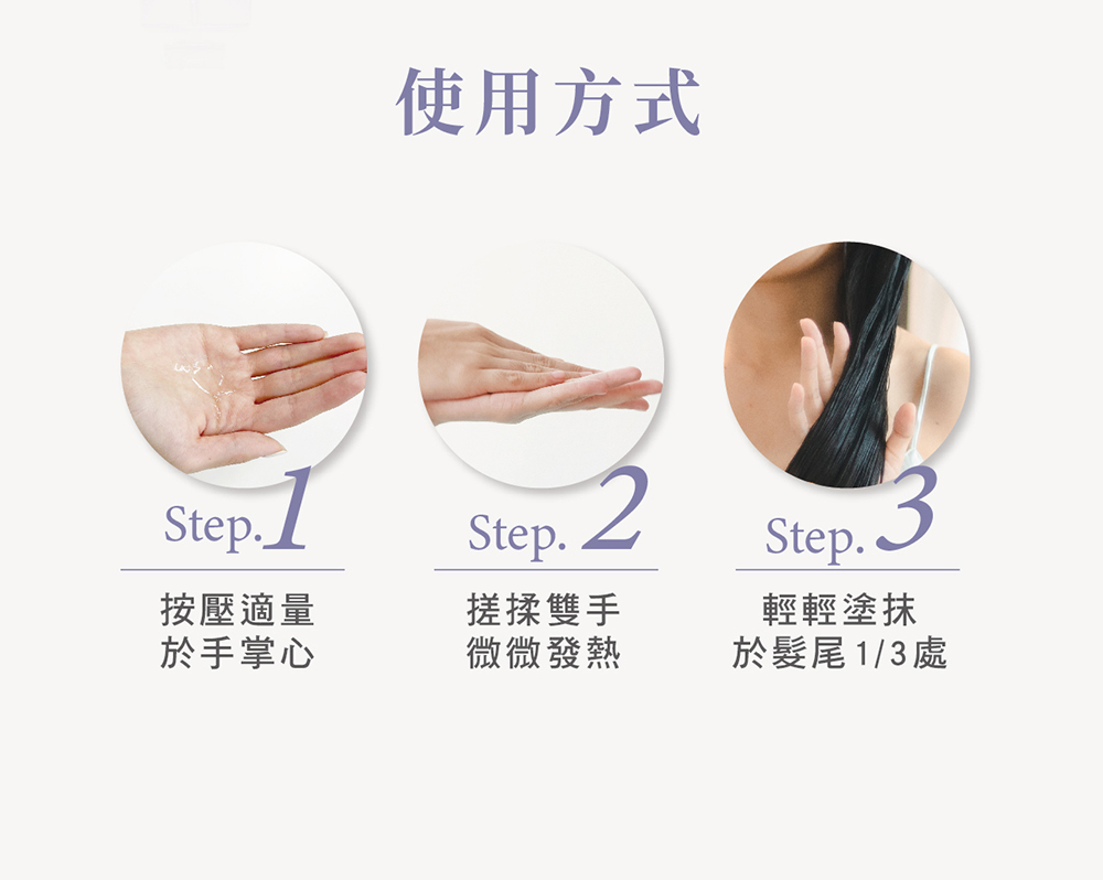💜輕盈髮油不厚重,給予毛鱗全面防護,維持髮絲光澤